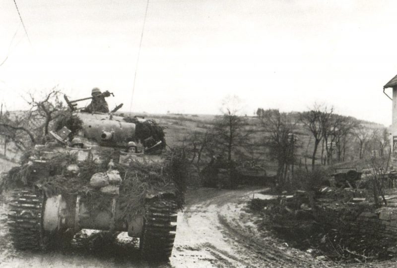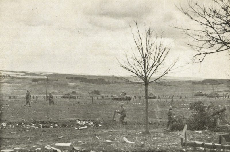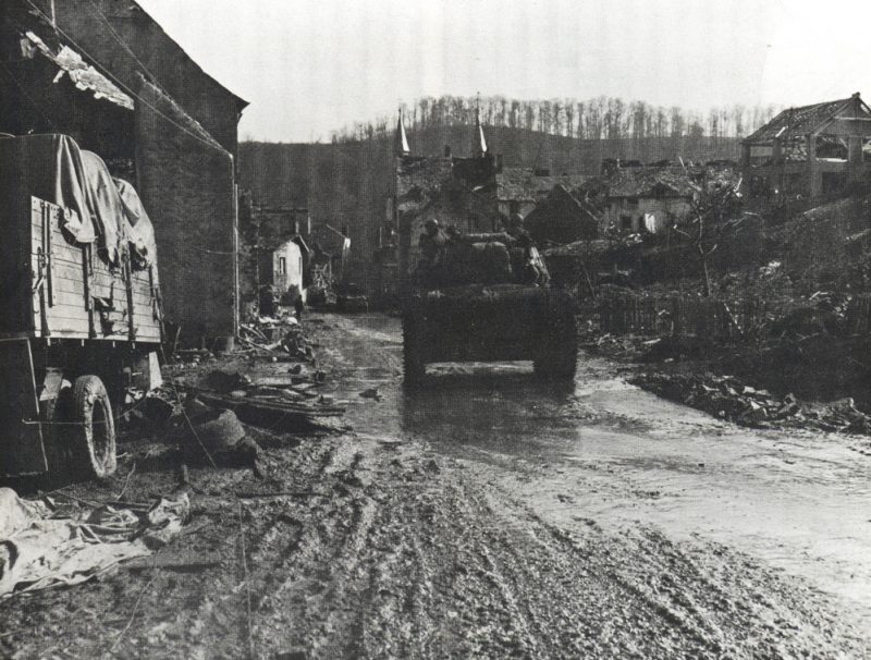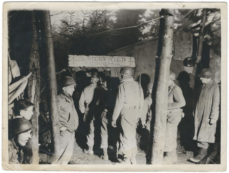 4th Division troops constructed a cinema build by salvaged canvas and empty shell boxes near Prüm
